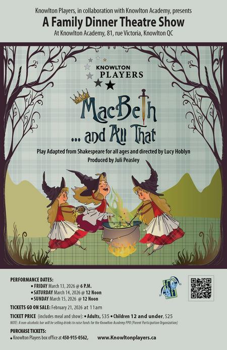 This collaborative production with Knowlton Academy will take place the weekend of March 13th at Knowlton Academy, 70 rue Victoria.